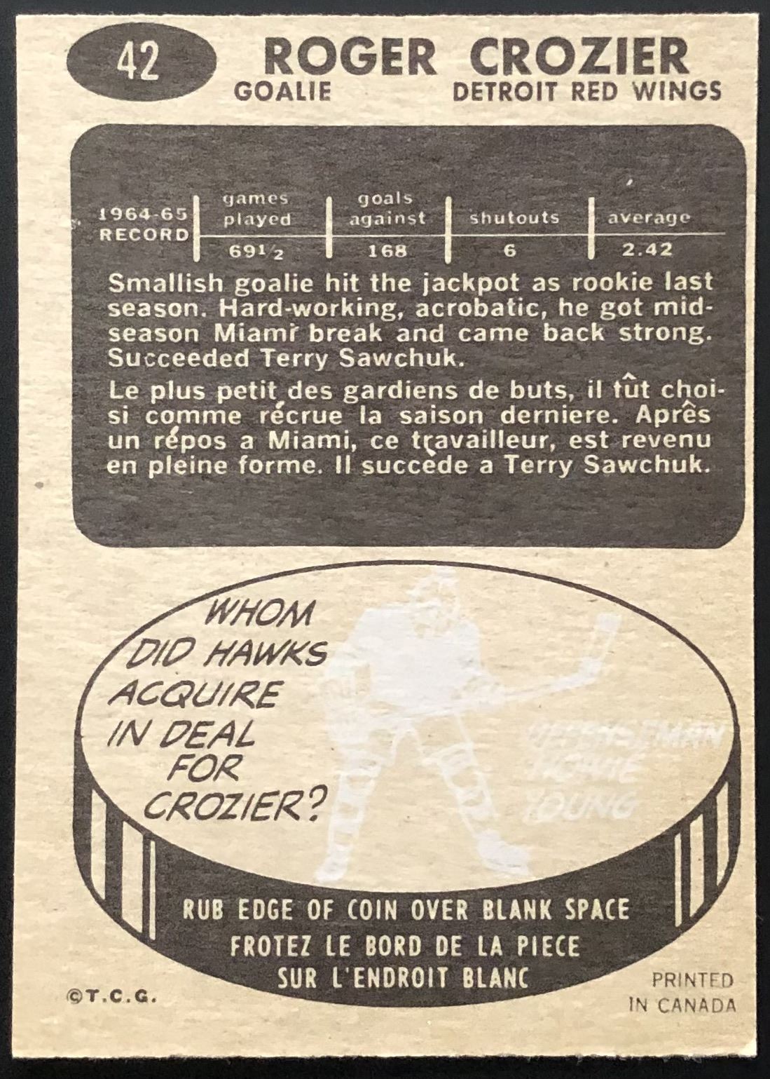 Card #42 NHL, hockey, vintage, OPC, hall of fame