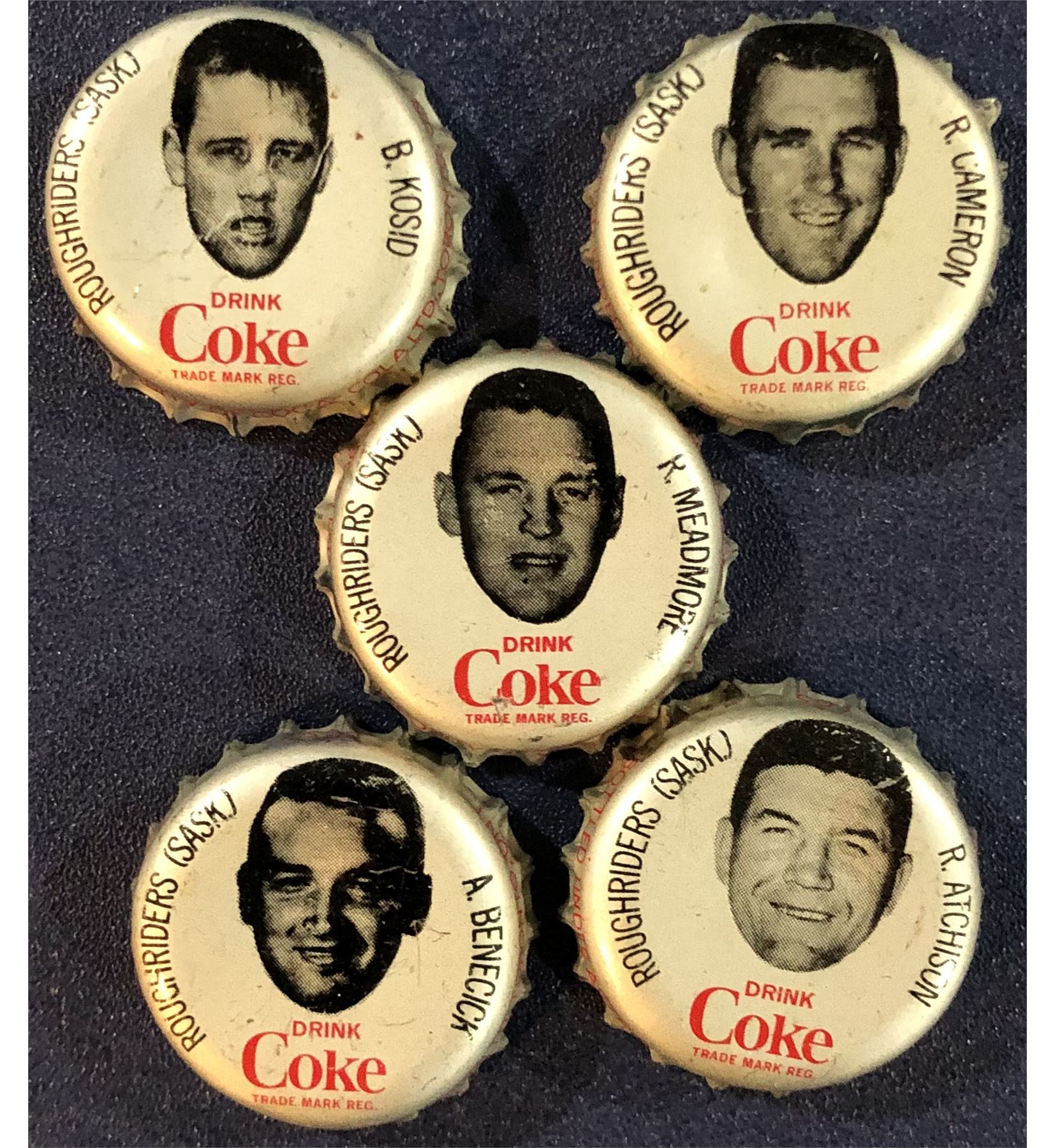1965 COCA-COLA CFL SASKATCHEWAN BOTTLE CAPS (5)