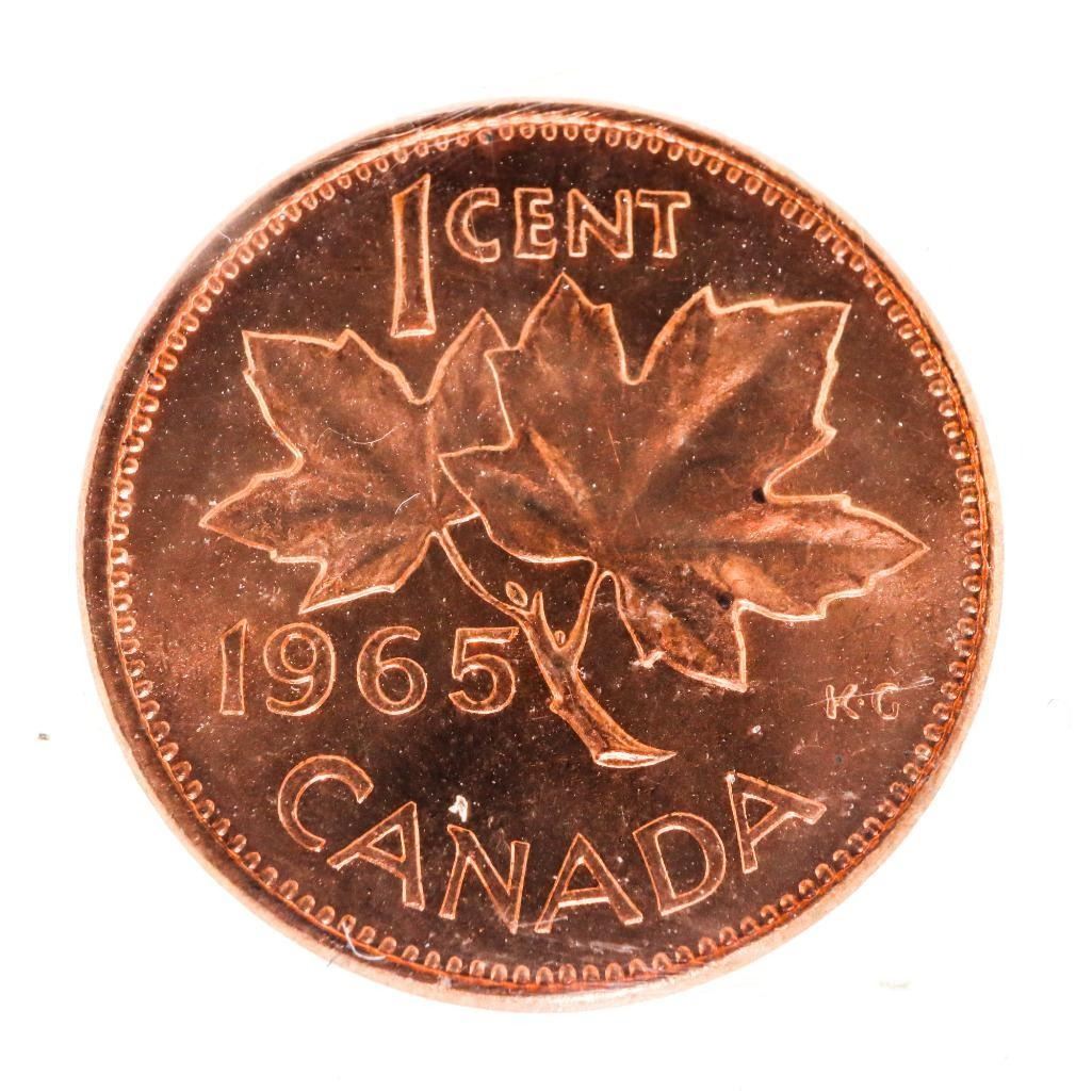 1965 Canada 1 Cent. MS-64. SmBds Ptd 5; Red. ICCS.