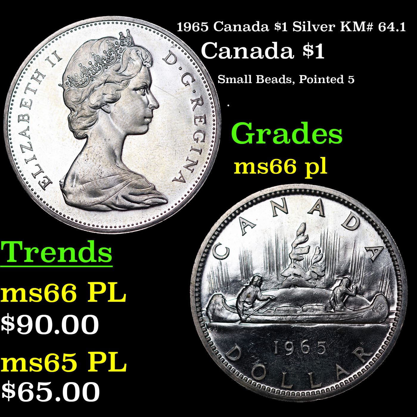1965 Canada $1 Silver KM# 64.1 Canada Dollar $1 Grades GEM+ UNC PL.