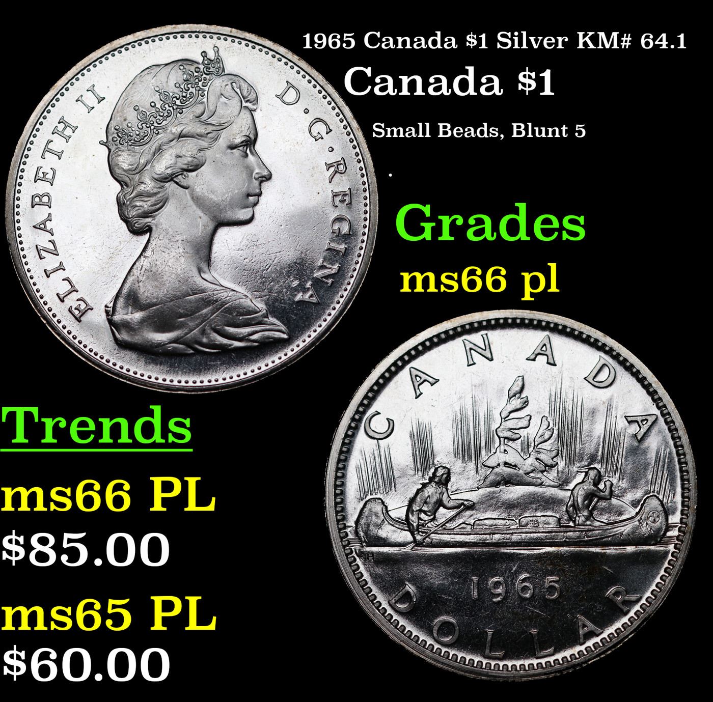 1965 Canada $1 Silver KM# 64.1 Canada Dollar $1 Grades GEM+ UNC PL.