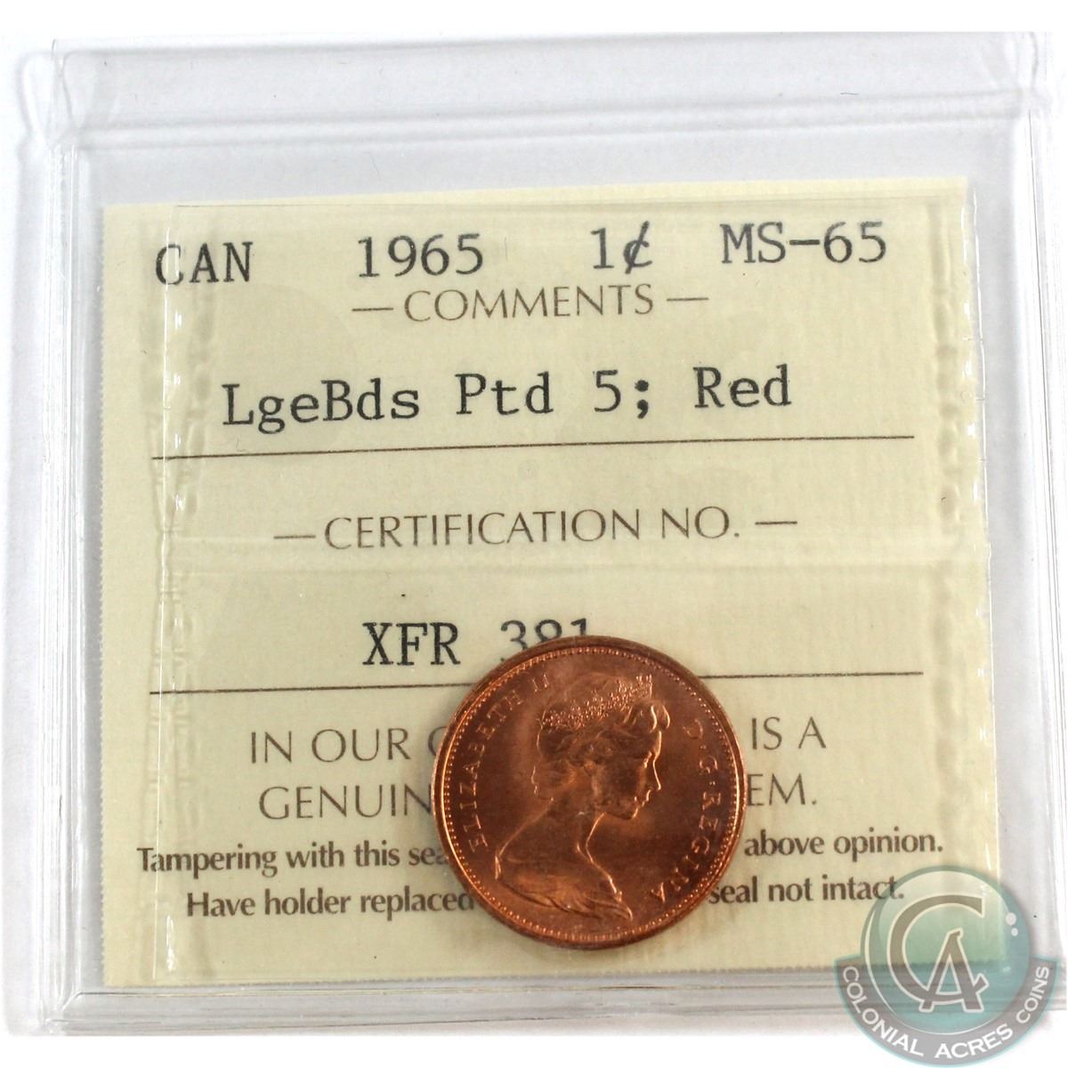 1965 Canada 1-cent Large Beads Pointed 5 ICCS Certified MS-65 Red