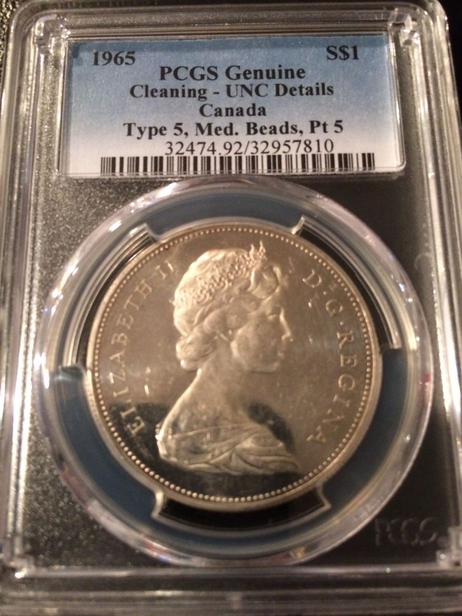 1965 Canada Dollar PCGS UNC Type 5 Med Beads Pointed 5