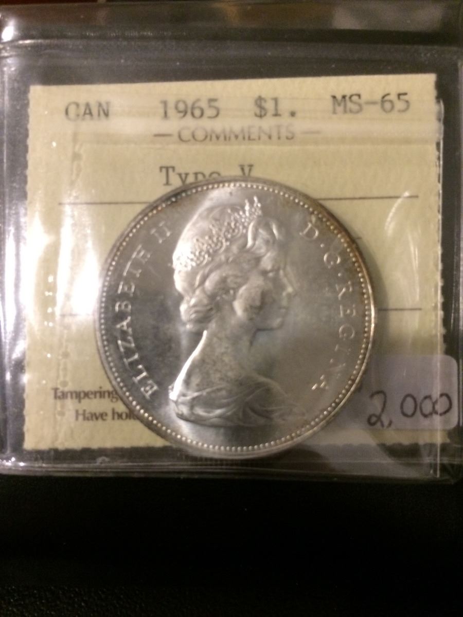 1965 Canada Dollar Type V ICCS MS65 Rare!! Value $2000