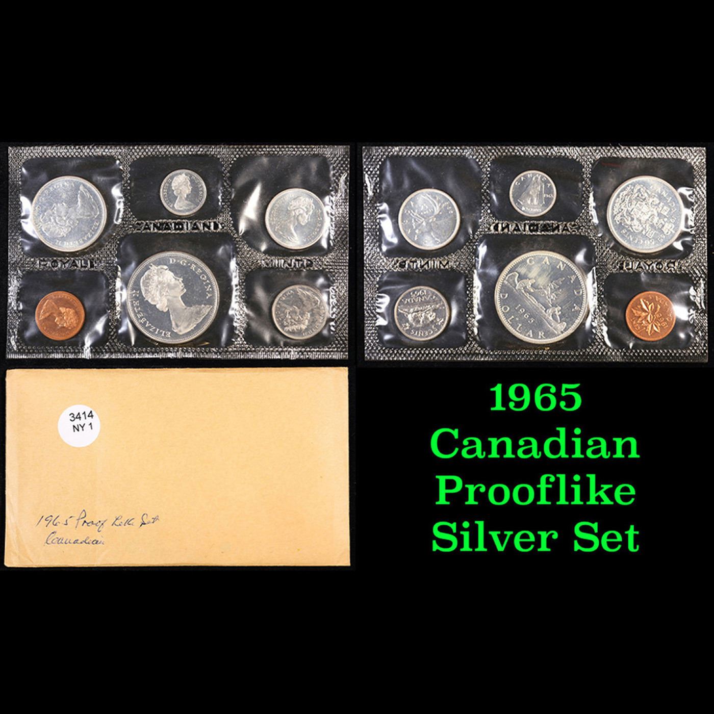 1965 Canadian Prooflike Silver Set. The Canadian Proof Like Mint Set is minted by the Royal Canadian Mint. It comes in it original packaging and COA. 6 coins that are uncirculated Canadian coins in which 4 are made with 80% silver 20% copper alloy. This product contains approximately 1.11 troy ounces of fine silver: 1 Canadian Silver Dollar – 80% Silver – Weight: 23.33 g. 1 Canadian Silver 50 Cent Piece – 80% Silver – Weight: 11.66 g. 1 Canadian Silver 25 Cent Piece – 80% Silver – Weight: 5.83 g. 1 Canadian Silver 10 Cent Piece – 80% Silver – Weight: 2.31 g. 1 Canadian Nickel 5 Cent Piece – Weight: 4.59 g. 1 Canadian Bronze Penny – Weight: 3.24 g