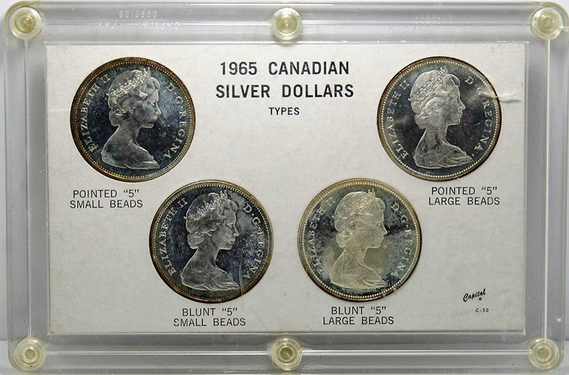 1965 Canadian Dollar Type Set (4 of 5 Types), In Capital Plastics Holder