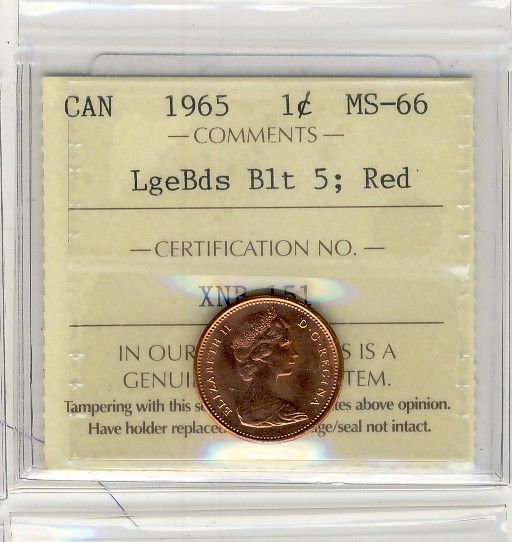 1965, Cents ICCS MS66; Red, Cents LgeBds Blt5.