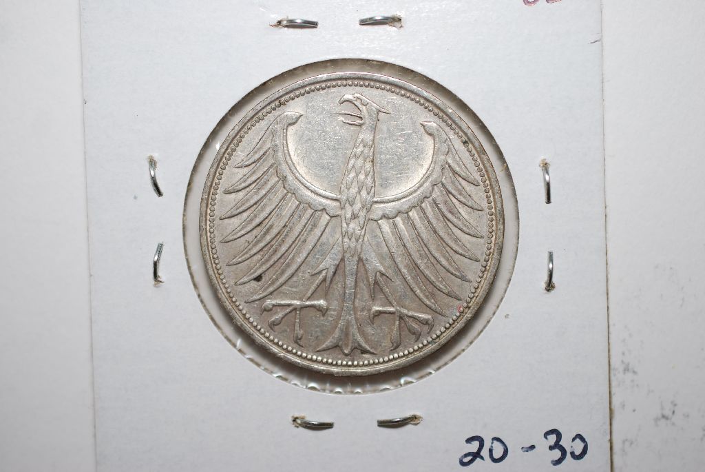 1965-F German 5 Deutsche Mark Foreign Coin; .2250 ASW; EST. $20-30