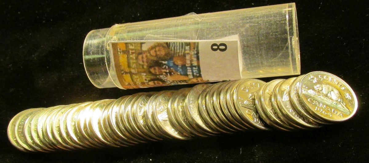 1965 Gem BU Roll of Canada "Beaver" Nickels in a plastic tube.