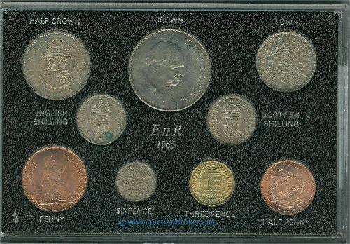 1965 Great Britain Uncirculated set; 9 pieces in holder