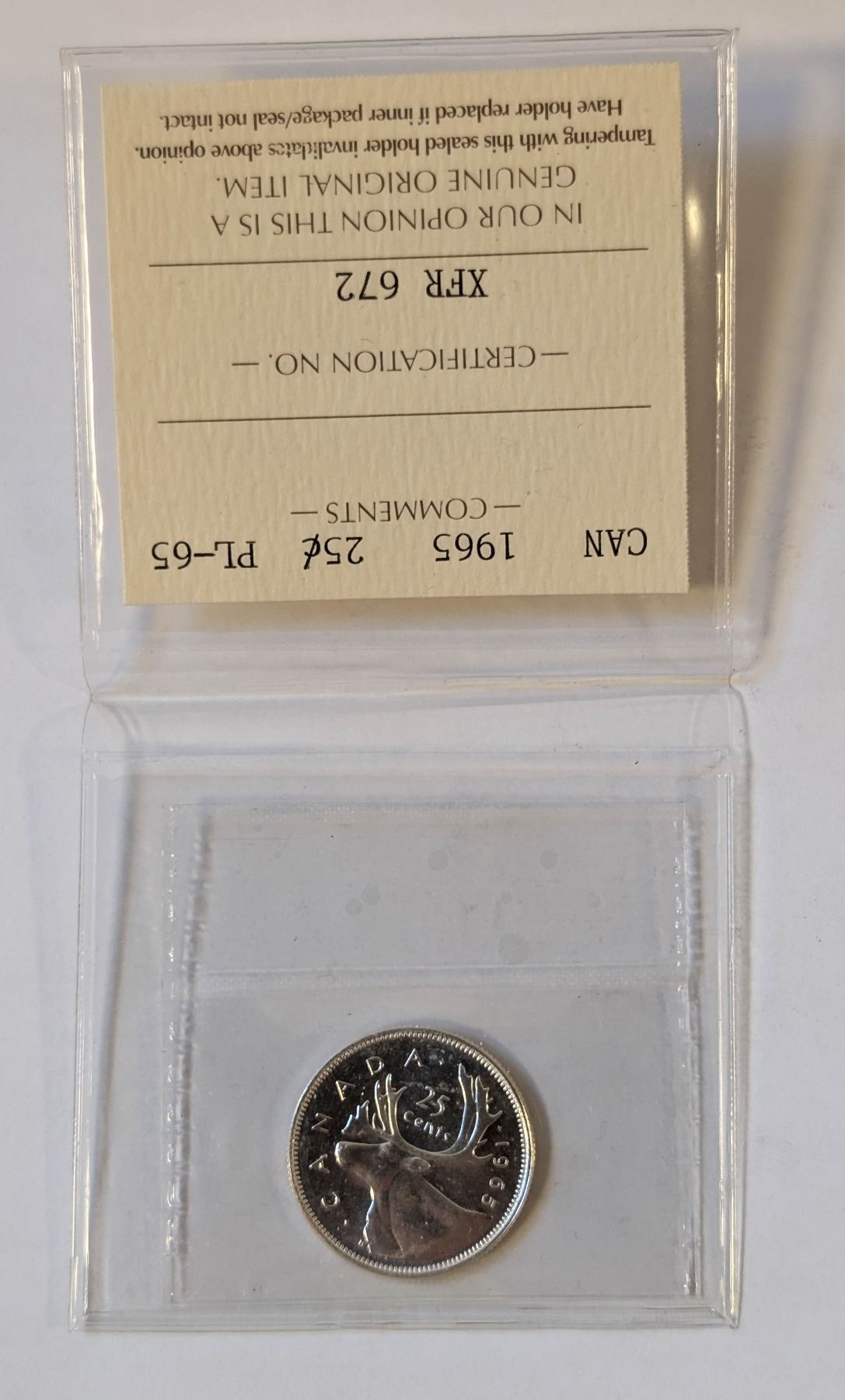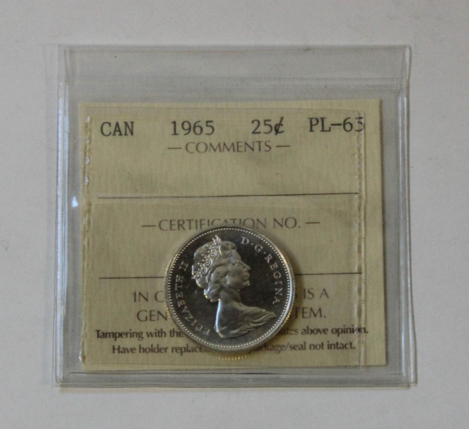 1965 ICCS CERTIFIED PL-65 SILVER QUARTER
