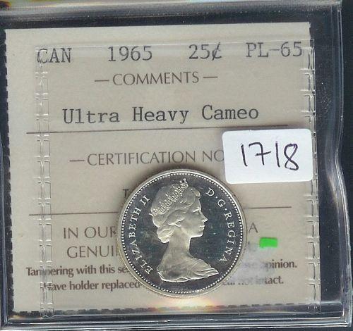 1965 ICCS PL-65 ULTRA HEAVY CAMEO, fully struck with strong lustre. Scarce this nice! Seldom seen in this grade.