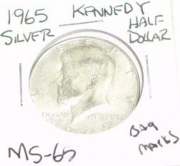 1965 KENNEDY SILVER HALF DOLLAR *EXTREMELY RARE MS-65 HIGH GRADE* Bag Marks!! ***Coin, Currency & All Items Listed in this auction - Grades, Conditions and Values are not Safe Deposit Coins LLC Responsibilty. Grades, Condition and Values are determined by Consigner(s) & Buyers.