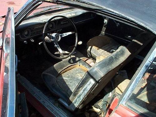 RED CONV. RUSTY FLOORS AND QRTRS, 6CYL, 4SPD, FLOOR SHIFT INTERIOR COMPLETE, BUCKETS, FOR RESTORATION OR PARTS