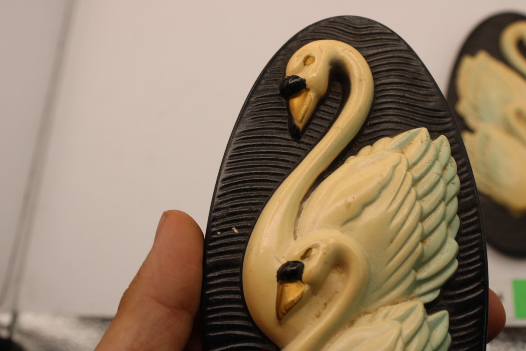 1965 Miller Studio Inc - Chalkware Wall Hanging Swans 7"