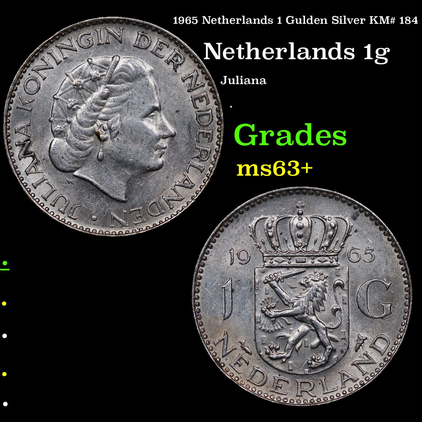 1965 Netherlands 1 Gulden Silver KM# 184 Grades Select+ Unc.
