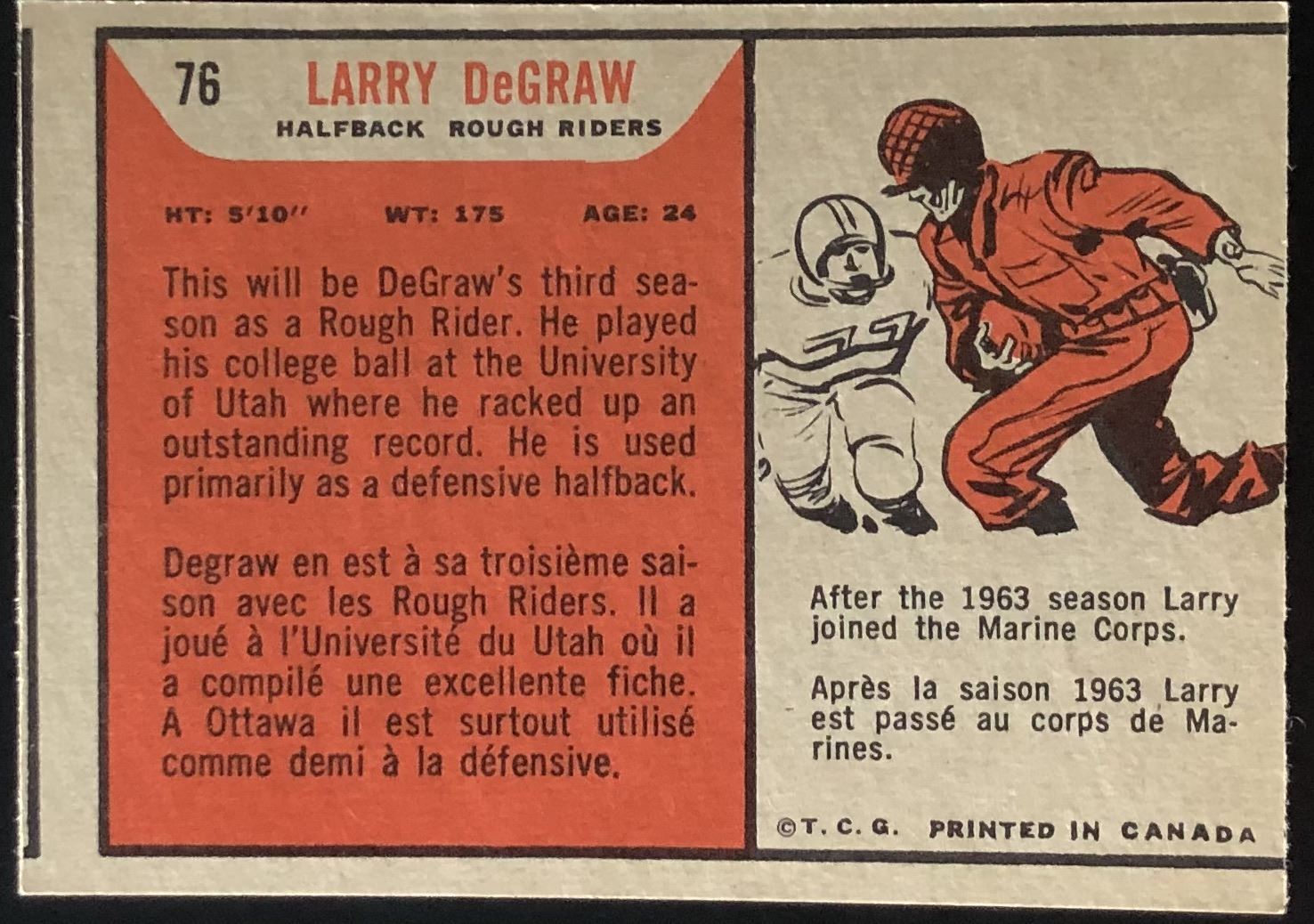 Card #76 vintage, CFL, OPC, football