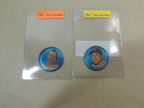 1965 OLD LONDON BASEBALL METAL CAPS: KEN BOYER & PETE WARD. AS SHOWN. VIEW PICTURE FOR DETAIL.