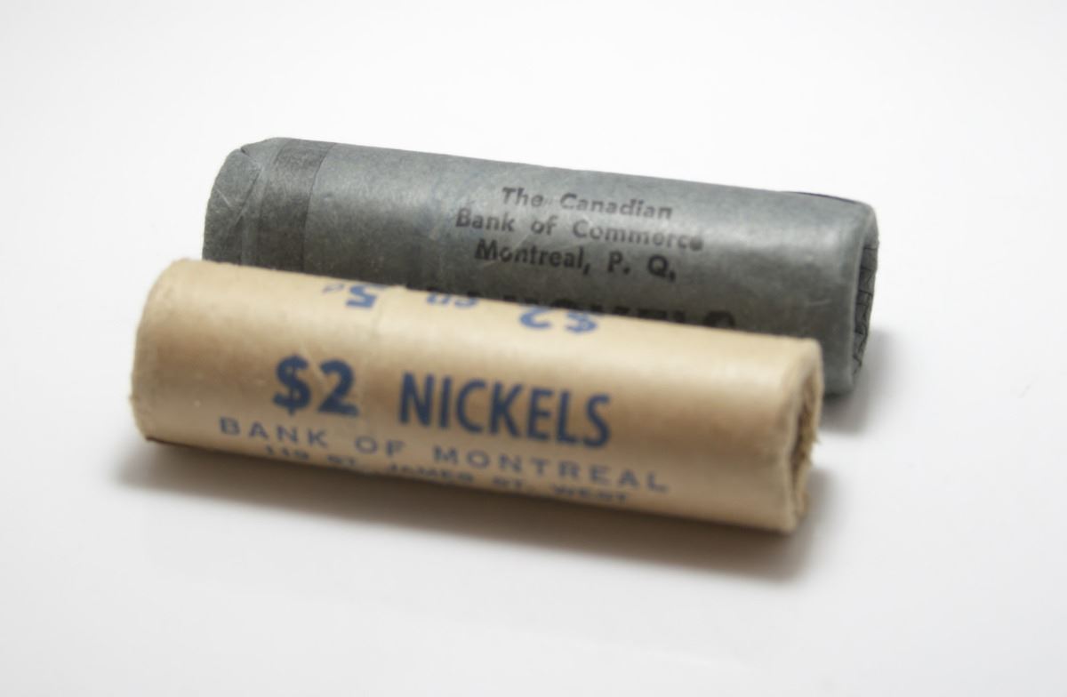 1965 Canadian Original 5-Cent Nickel Bank Rolls - Unopened - Bank of Montreal & CIBC
