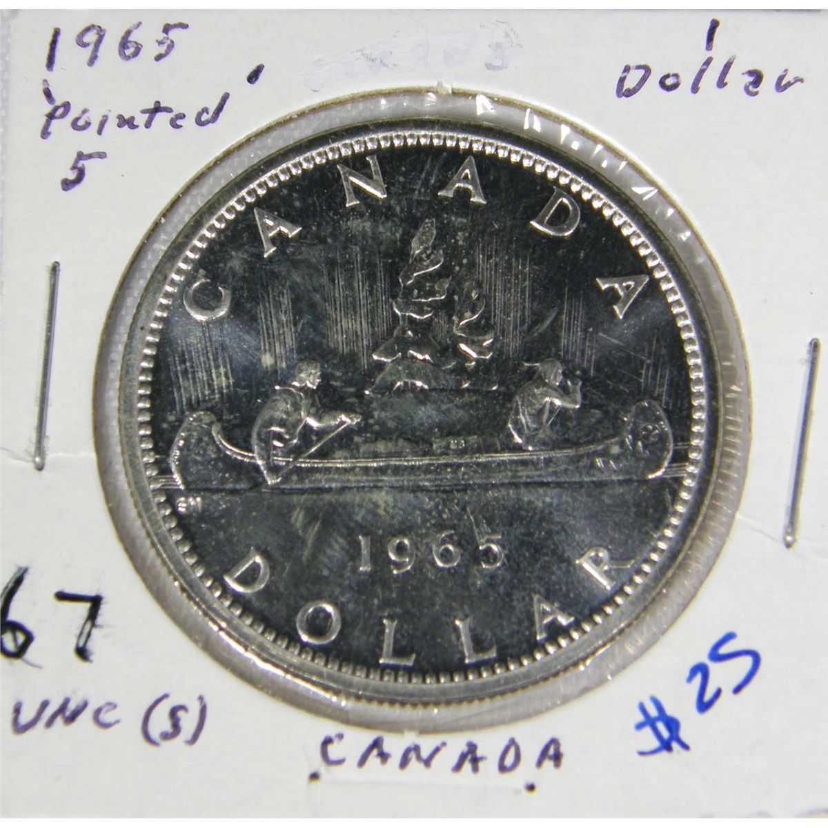 1965 'Pointed 5' Canadian .800 Silver Dollar BU