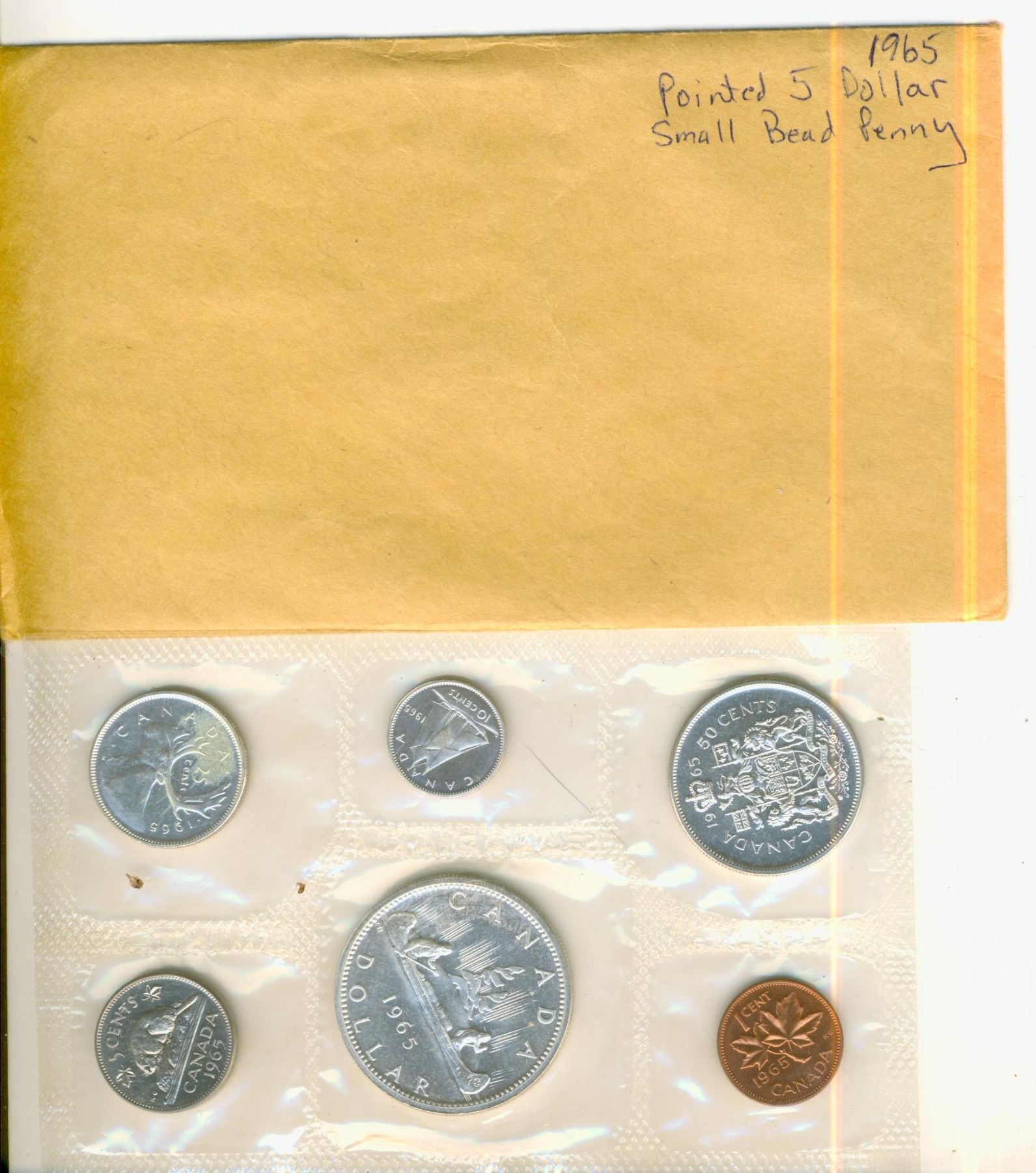 1965 Proof Like Set, Pointed 5 Dollar / Small Bead Penny