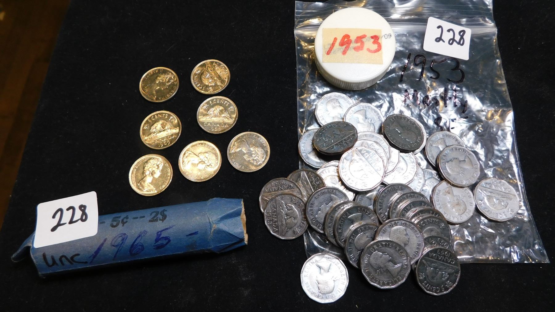 1965 ROLL FIVE CENTS AND 1953 ROLL 5 CENTS
