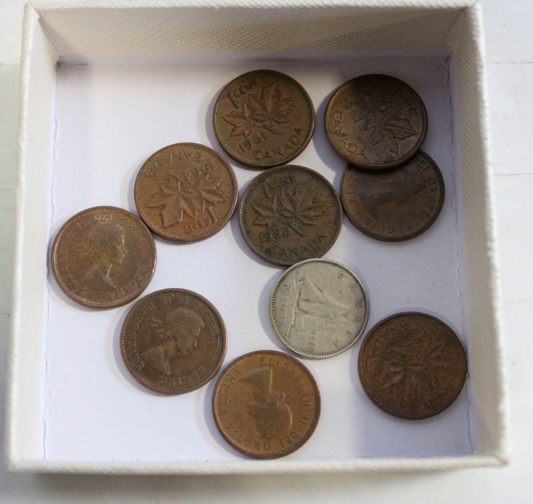 QUEEN ELIZABETH 1950S/60S ONE CENT COINS IN CUSHIONED BOX