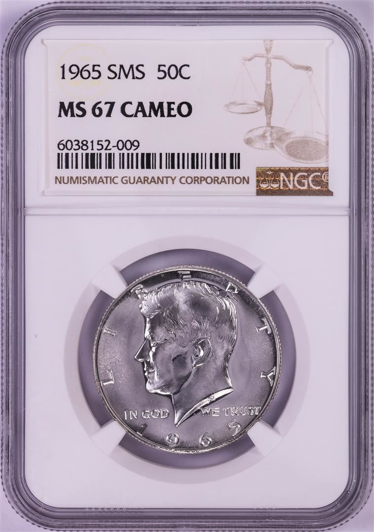 One 1965 SMS Kennedy Half Dollar Coin NGC MS67 Cameo. NGC Certified.
