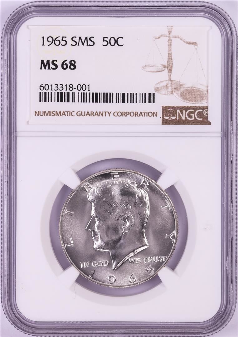One 1965 SMS Kennedy Half Dollar Coin NGC MS68. NGC Certified.