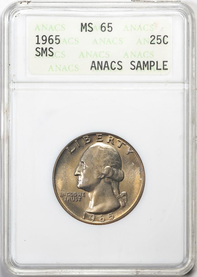 1965 SMS Washington Quarter Coin ANACS MS65 Sample Slab Old Soap Box Holder