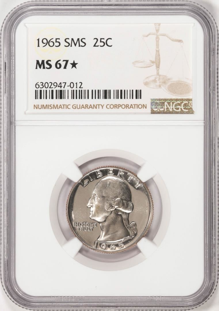 One 1965 SMS Washington Quarter Coin NGC MS67* star. NGC Certified.
