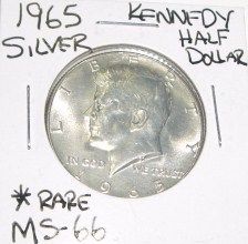 1965 Silver Kennedy Half Dollar *EXTREMELY RARE MS-66 HIGH GRADE*!! ***Coin, Currency & All Items Listed in this auction - Grades, Conditions and Values are not Safe Deposit Coins LLC Responsibilty. Grades, Condition and Values are determined by Consigner(s) & Buyers