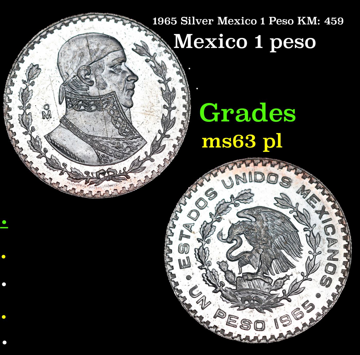 1965 Silver Mexico 1 Peso KM: 459 Grades Select Unc PL.