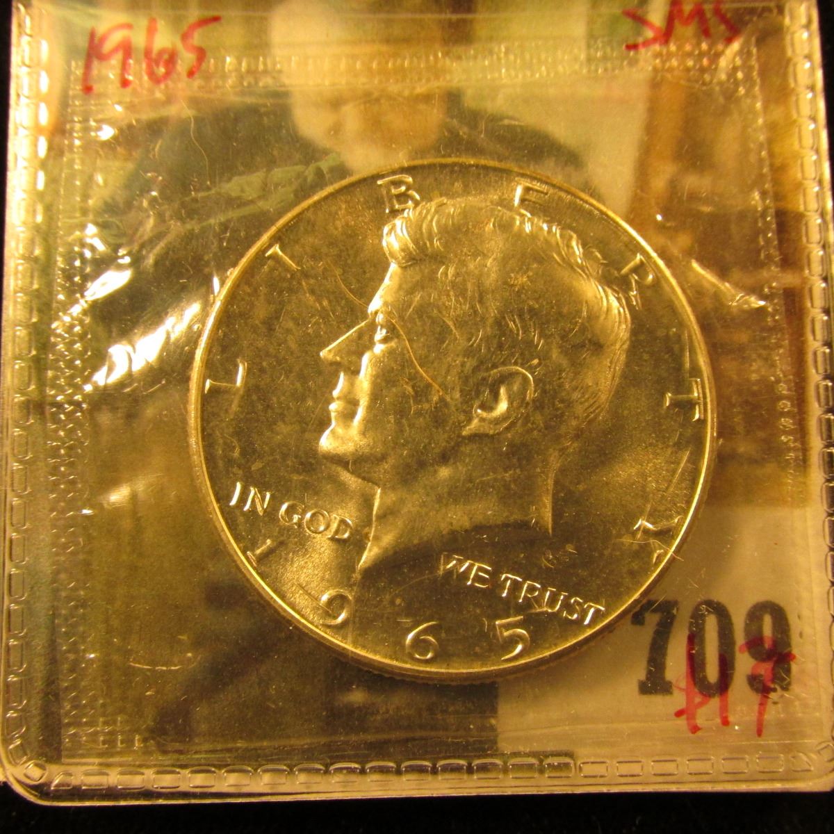 1965 Silver SMS/BU (proof-like) Kennedy Half Dollar, value $17