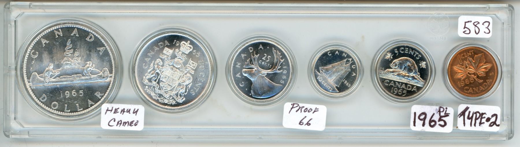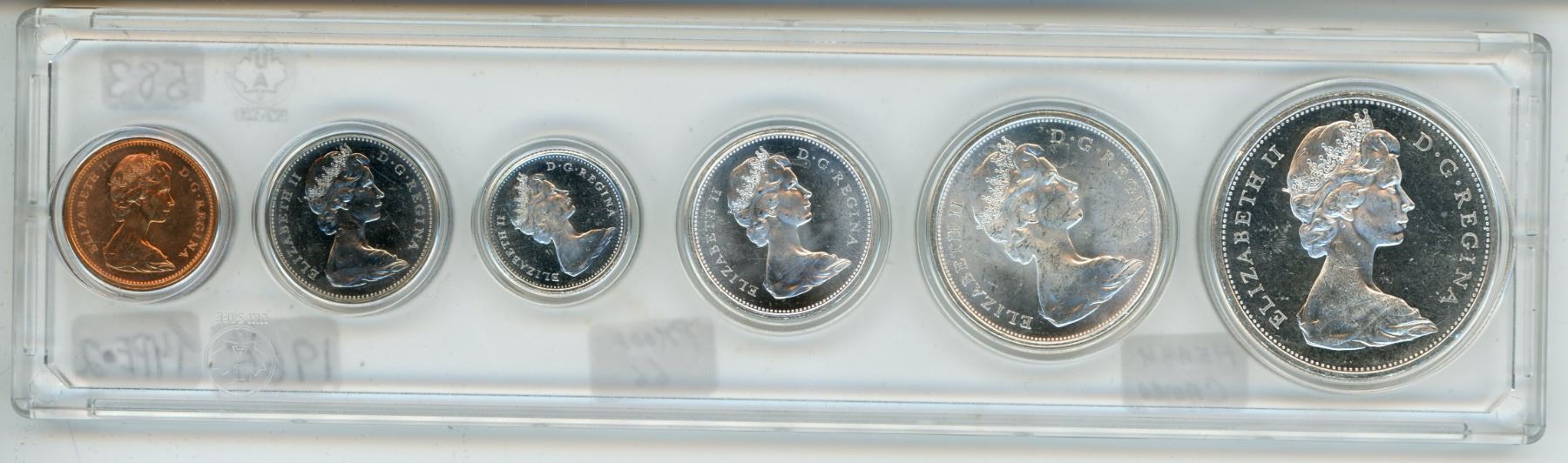 1965 Silver voyageur dollar. Canadian 6 coin proof set, in plastic case - Type 2