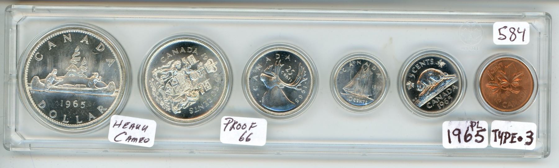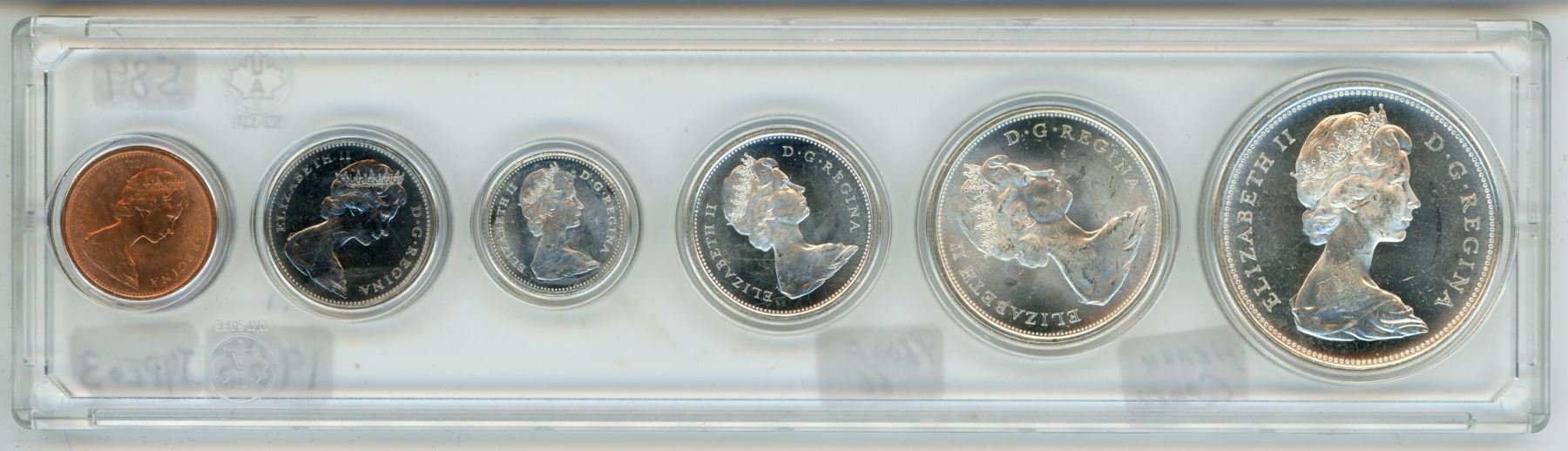 1965 Silver voyageur dollar. Canadian 6 coin proof set, in plastic case - Type 3