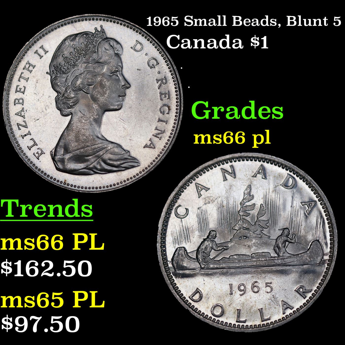 1965 Small Beads, Blunt 5 Canada Dollar $1 Grades GEM+ UNC PL.
