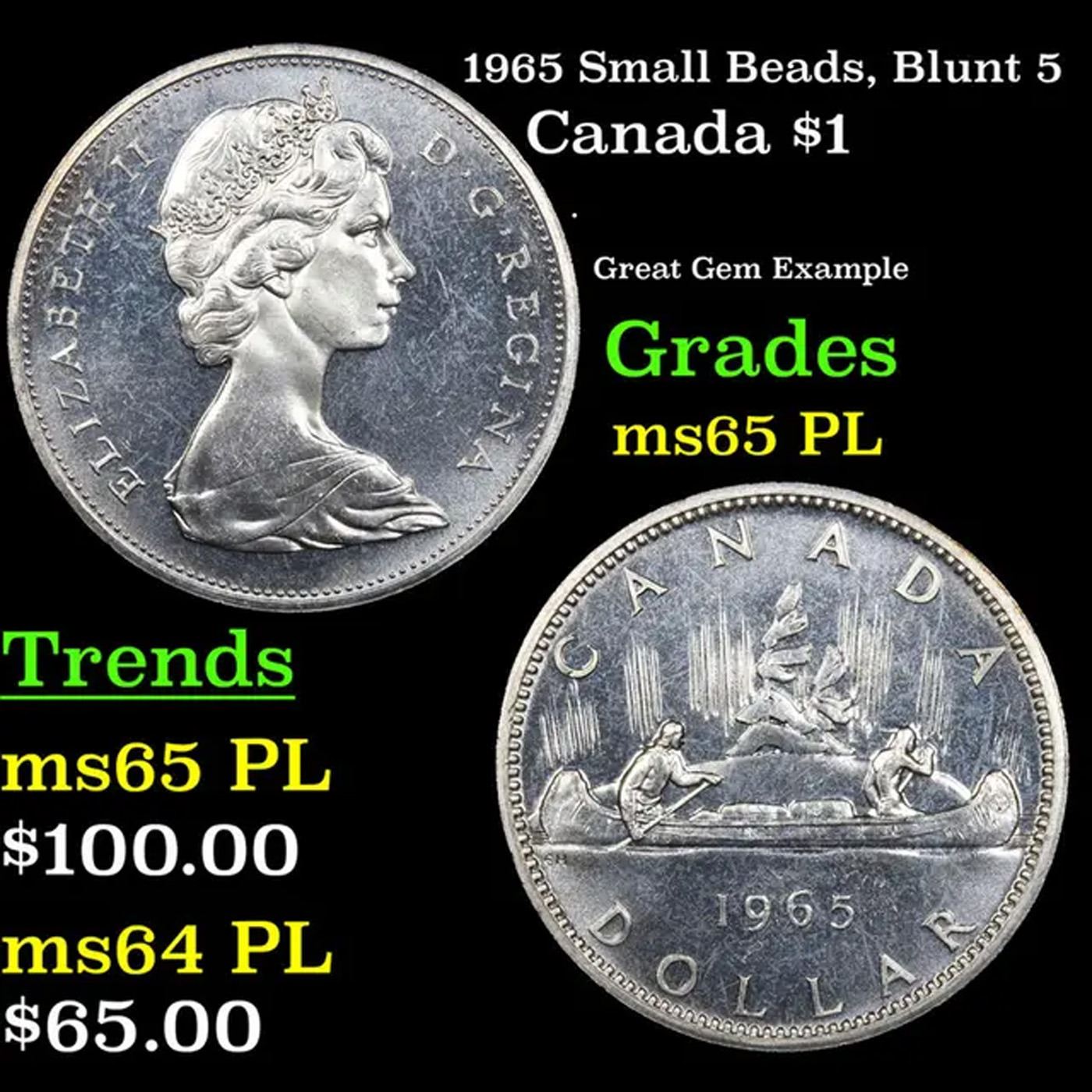 1965 Small Beads, Blunt 5 Canada Dollar $1 Grades GEM Unc PL.