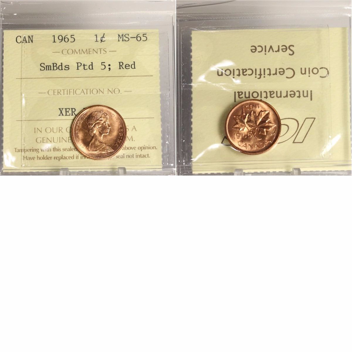 1965 Small Beads Pointed 5 Canada 1-cent ICCS Certified MS-65