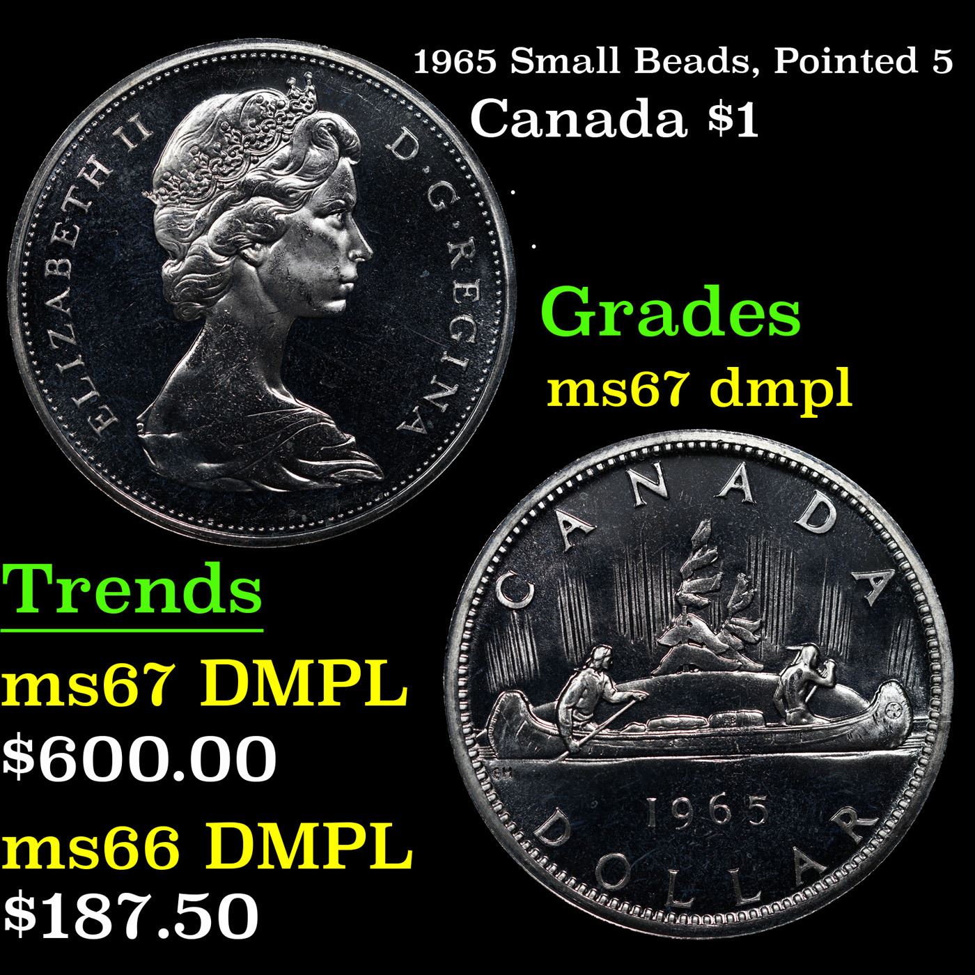 1965 Small Beads, Pointed 5 Canada Dollar $1 Grades GEM++ DMPL.