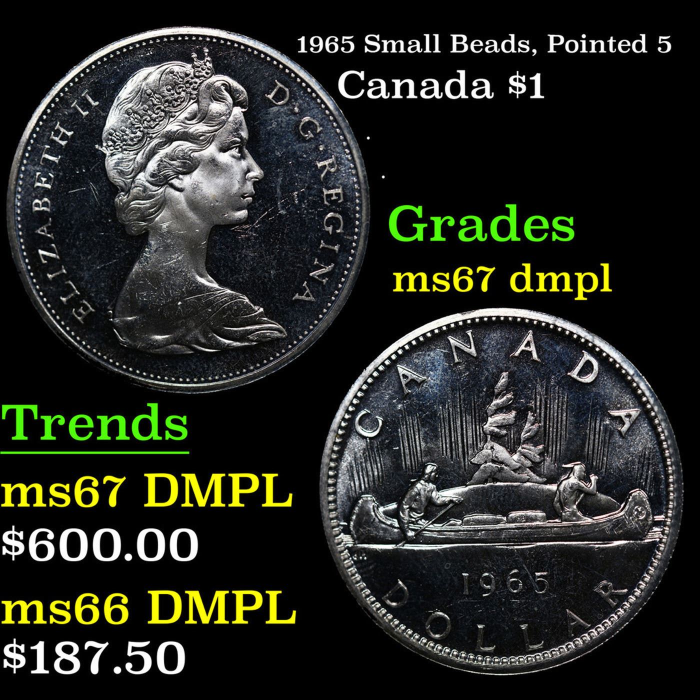 1965 Small Beads, Pointed 5 Canada Dollar $1 Grades GEM++ DMPL.