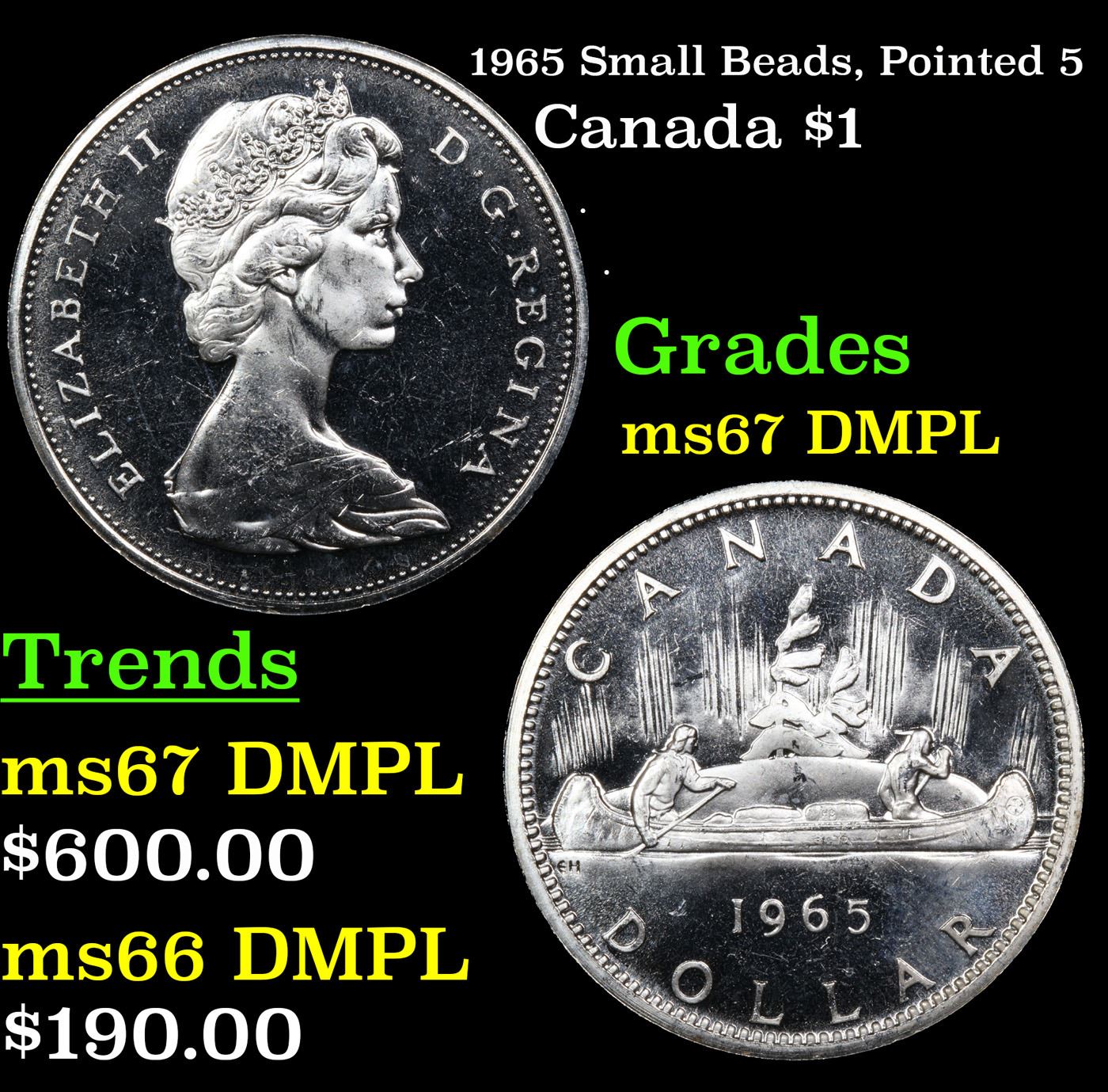 1965 Small Beads, Pointed 5 Canada Dollar $1 Grades GEM++ DMPL.