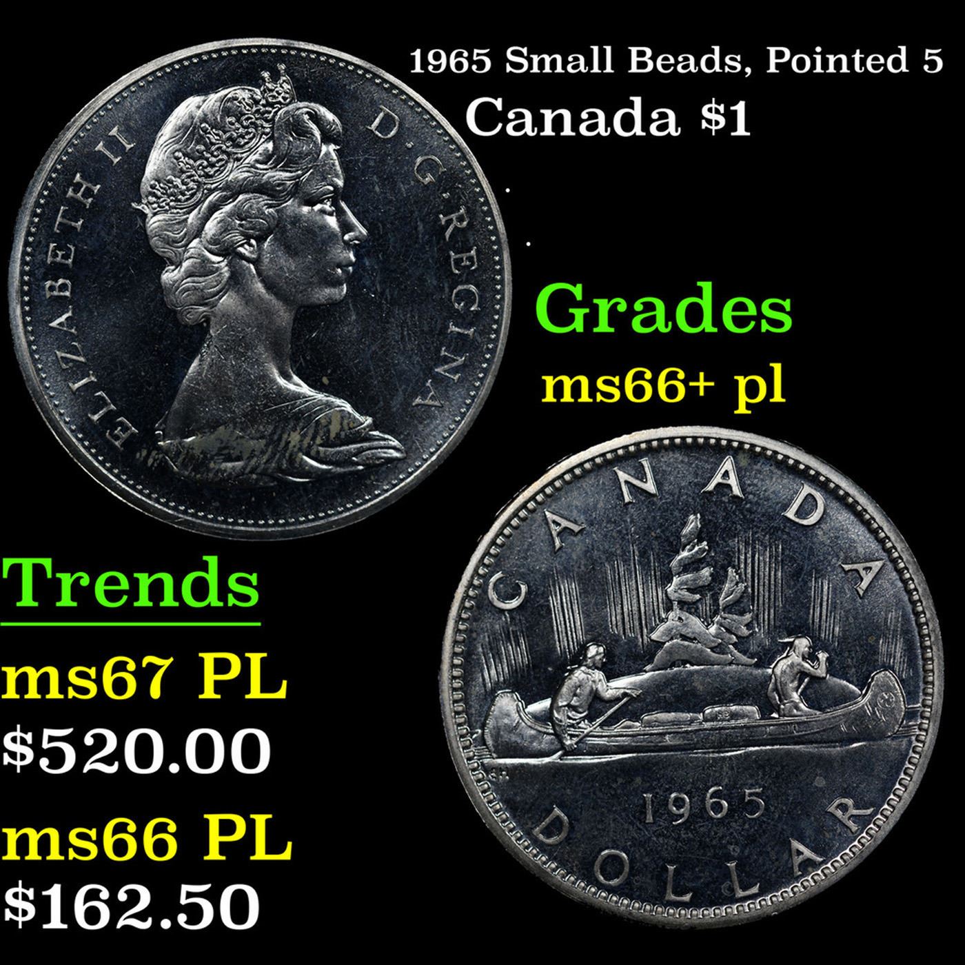 1965 Small Beads, Pointed 5 Canada Dollar $1 Grades GEM++ PL
