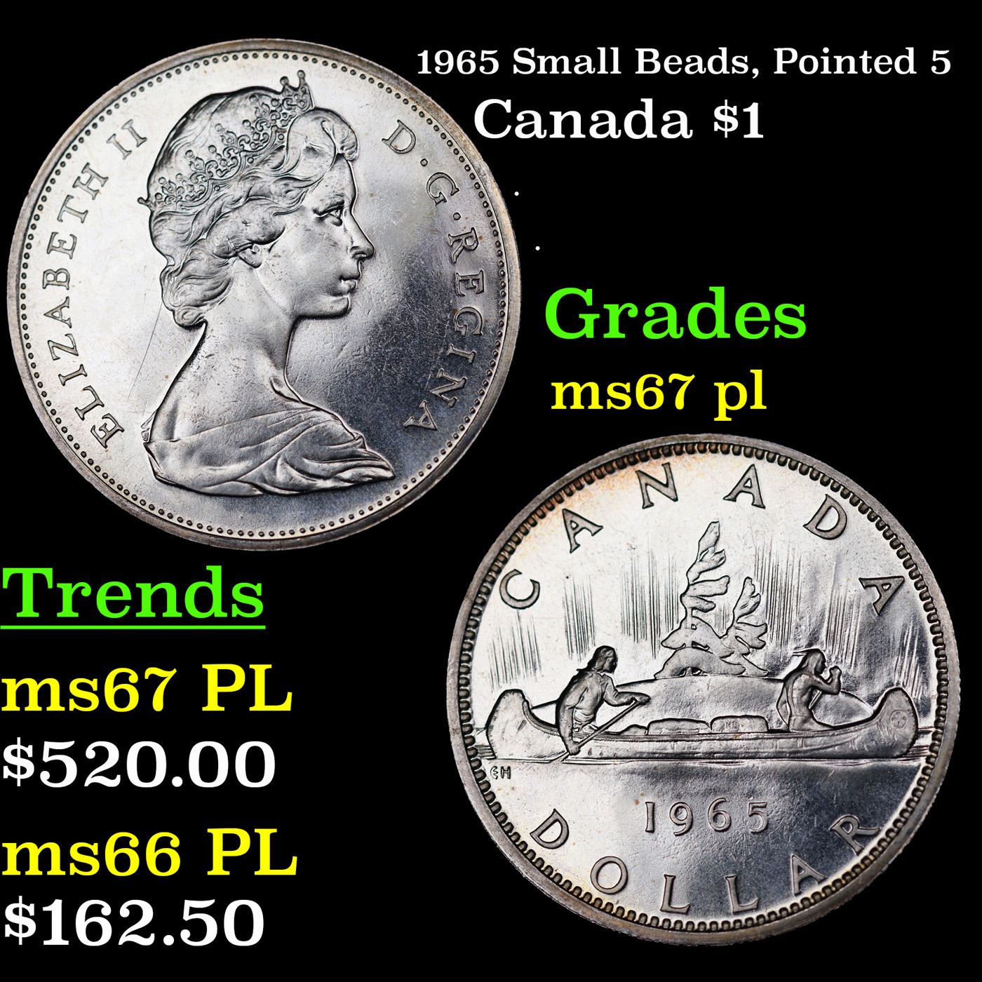 1965 Small Beads, Pointed 5 Canada Dollar $1 Grades GEM++ PL.