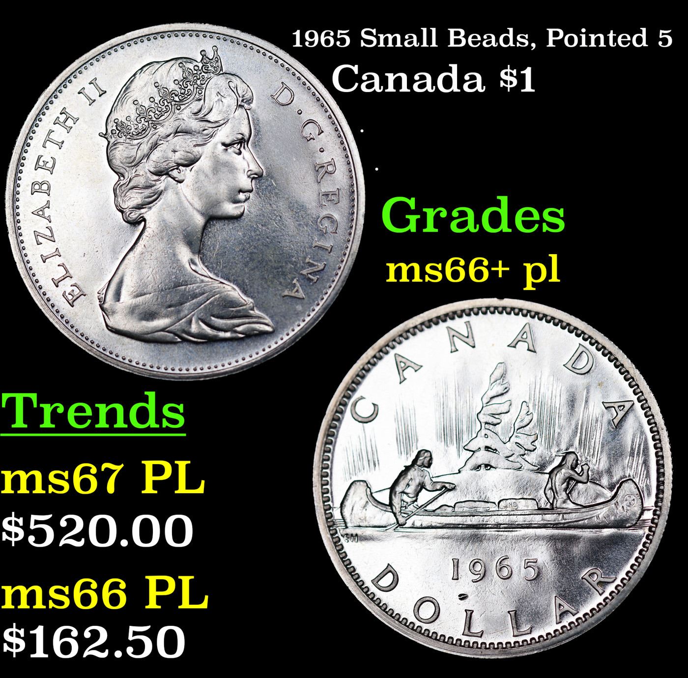 1965 Small Beads, Pointed 5 Canada Dollar $1 Grades GEM++ PL