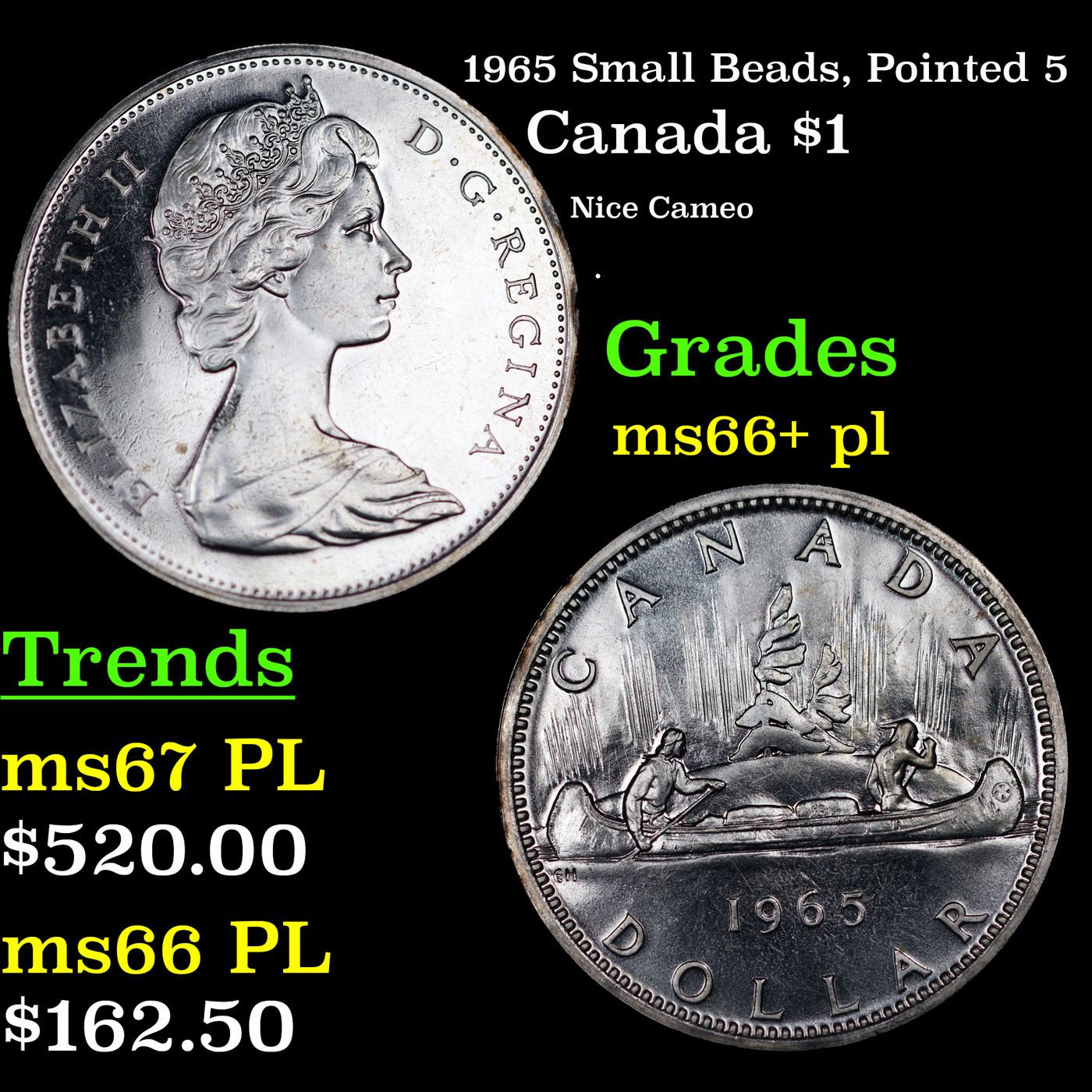 1965 Small Beads, Pointed 5 Canada Dollar $1 Grades GEM++ PL