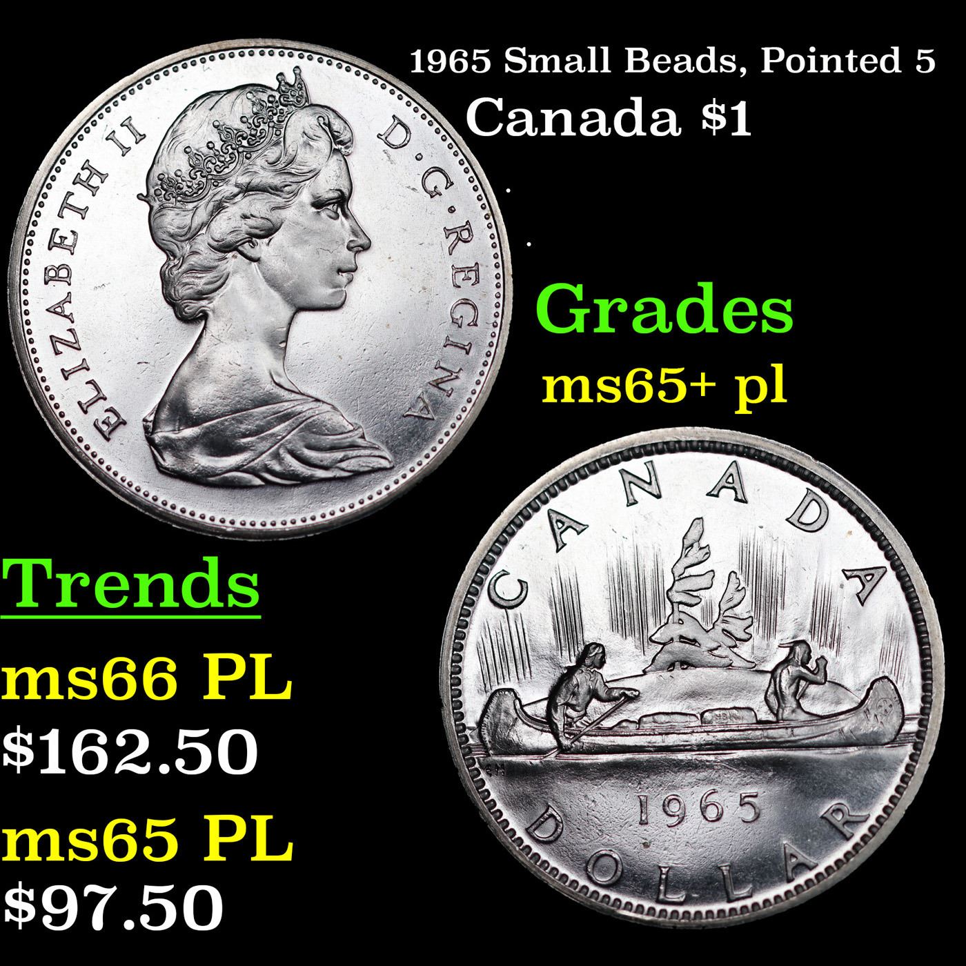 1965 Small Beads, Pointed 5 Canada Dollar $1 Grades GEM+ PL