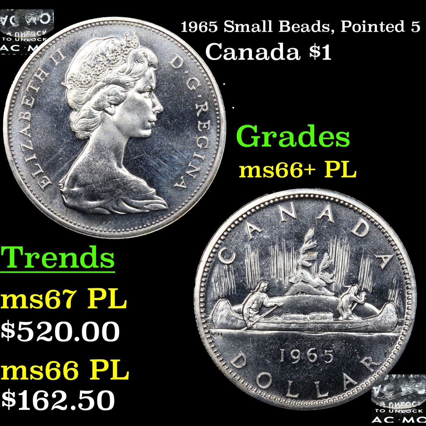 1965 Small Beads, Pointed 5 Canada Dollar $1 Grades GEM++ PL.