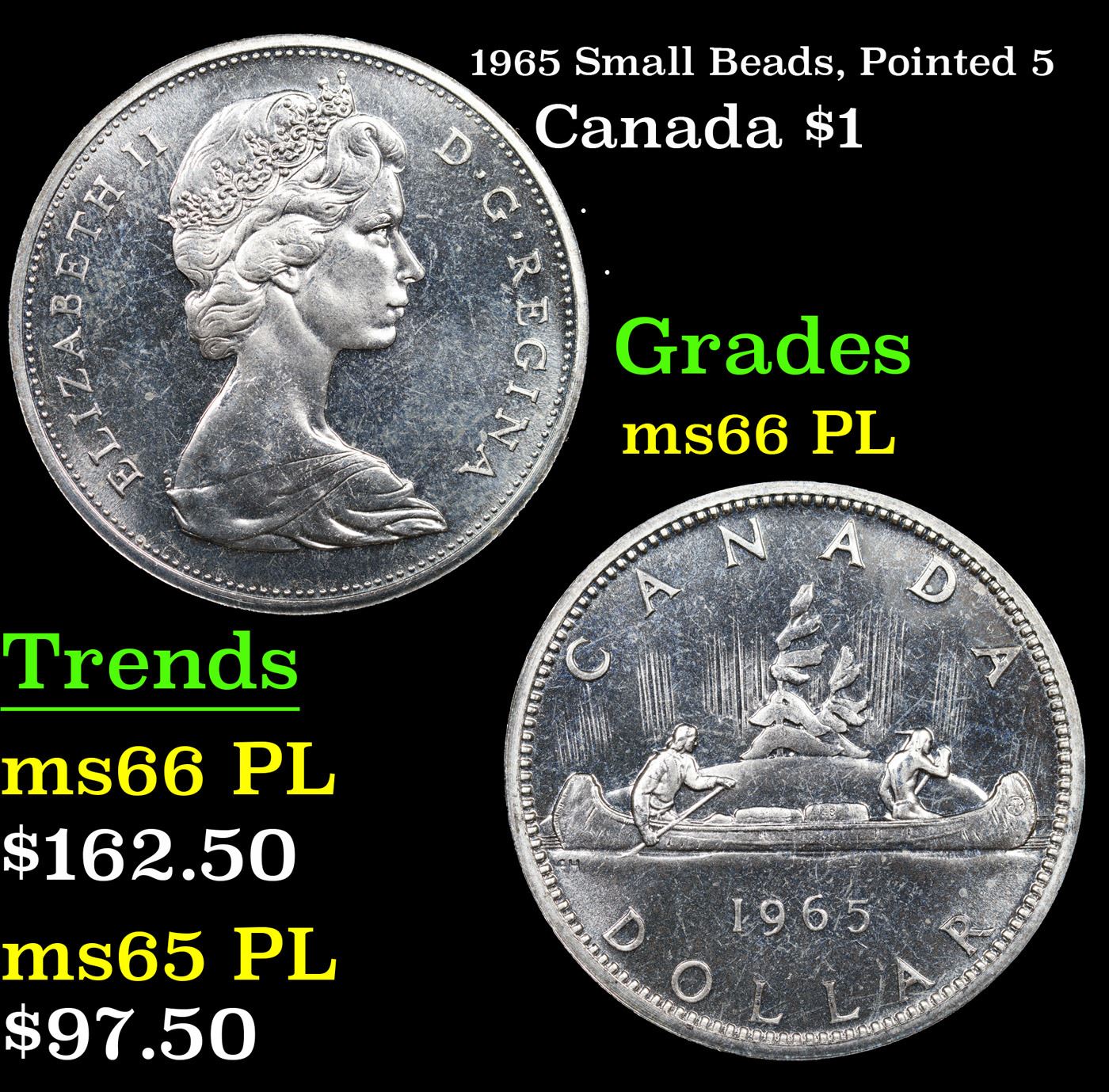 1965 Small Beads, Pointed 5 Canada Dollar $1 Grades GEM+ UNC PL.