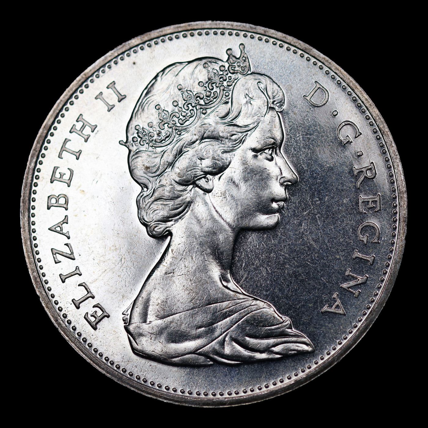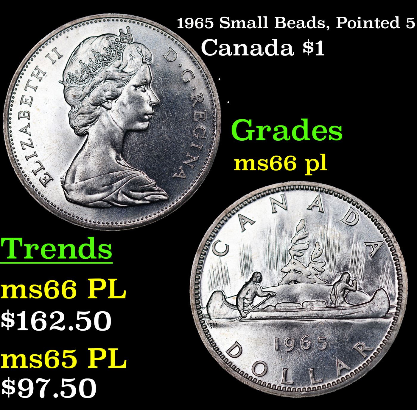 1965 Small Beads, Pointed 5 Canada Dollar $1 Grades GEM+ UNC PL.